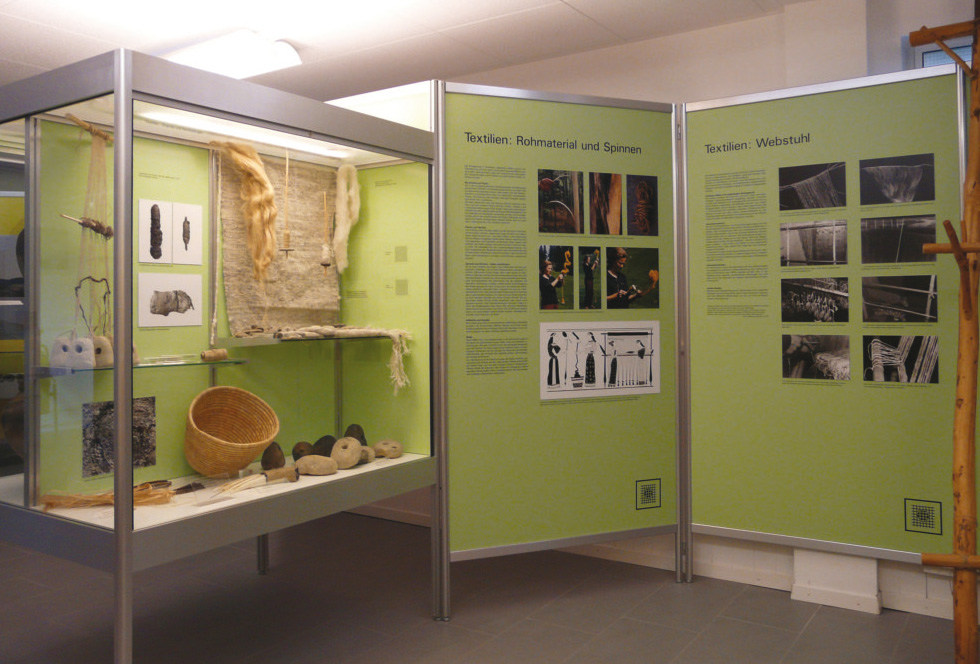 Im Besucherpavillon gibt es Werkzeuge, Waffen, Keramiken und Geflechte nach den Vorbildern der Jungsteinzeit zu entdecken.