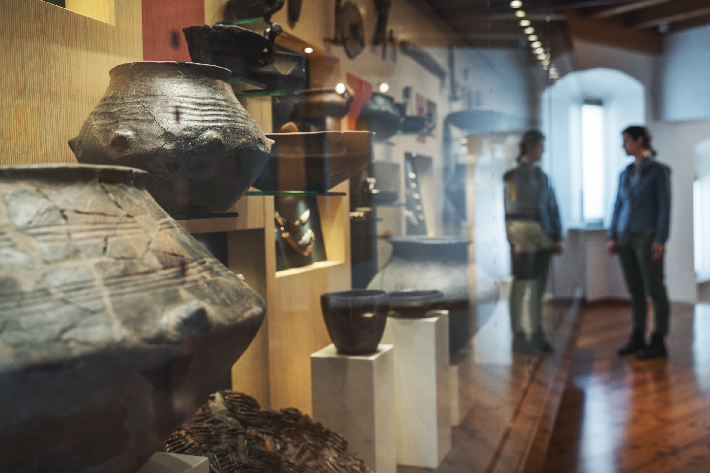 Eine attraktive Inszenierung zeigt die faszinierende Welt der Pfahlbaufunde. Zu sehen sind etwa eine jungsteinzeitliche Tür, eines der ältesten Räder Europas sowie zahlreiche Objekte aus Leder oder Holz.