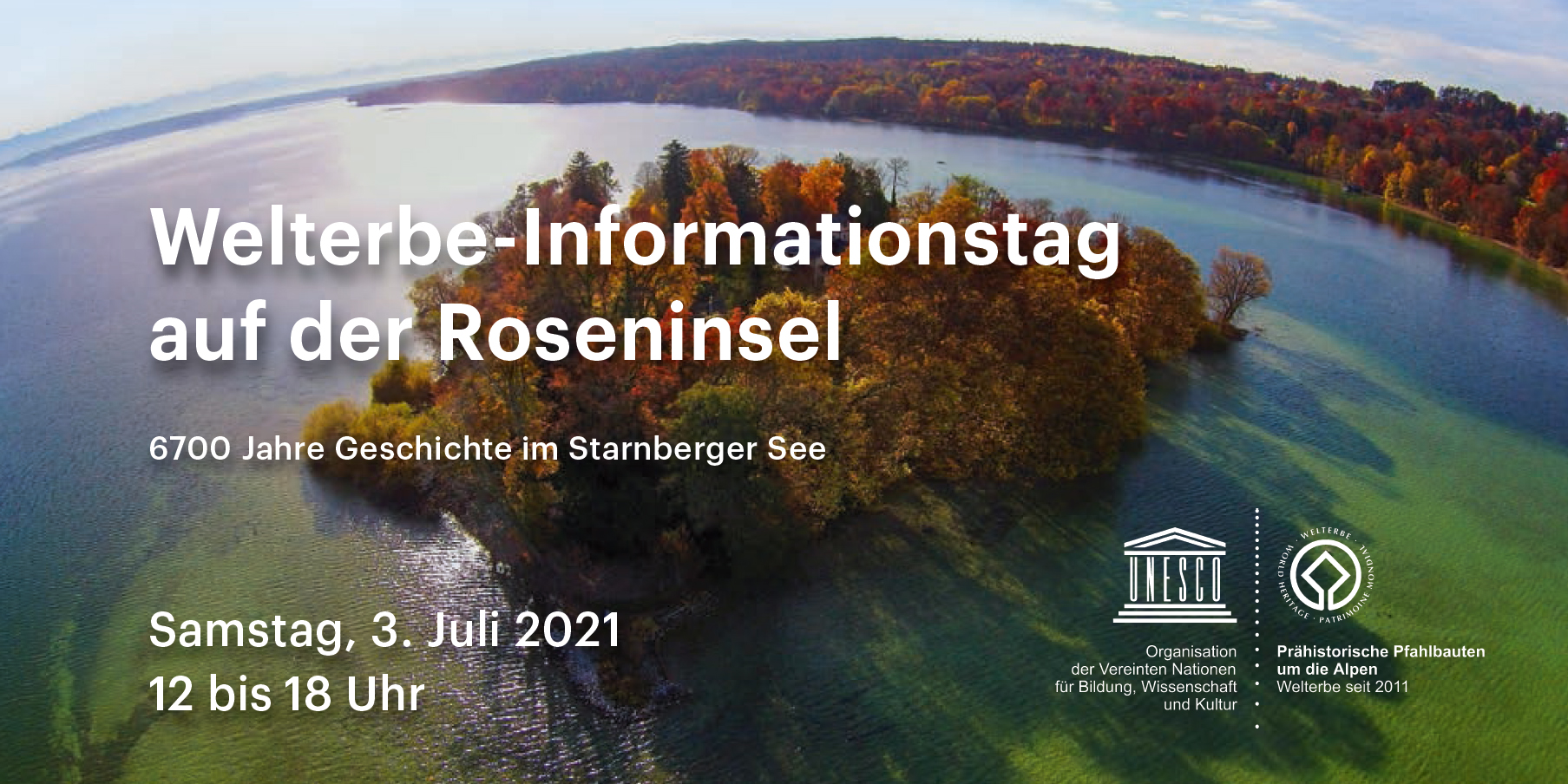 Am 3. Juli lädt die Roseninsel am Starnberger See von 12 bis 18 Uhr zu einem Rundgang im Freien ein, der entlang verschiedener Stationen über die prähistorischen Pfahlbauten, deren Schutz und Erforschung informiert: Beispielsweise berichten Forschungstaucher über ihre Arbeit und dank Mitmachaktionen können Kinder und Jugendliche lernen, aus welchen Materialien archäologische Unterwasserfunde bestehen und worauf Unterwasserarchäologen achten müssen, um sie zu finden. Veranstaltet wird das bunte Programm von der Bayerischen Verwaltung der staatlichen Schlösser, Gärten und Seen, von der Bayerischen Gesellschaft für Unterwasserarchäologie und vom Bayerischen Landesamt für Denkmalpflege. Einen Überblick über alle Stationen liefert der angehängte Flyer zum Welterbe-Parcours.